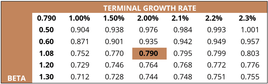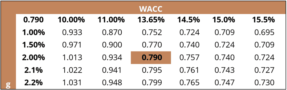 Analiza de senzitivitate pe baza coeficientului beta și a ratei de creștere terminală