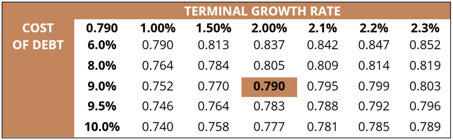 Analiza de senzitivitate pe baza ratei de actualizare a fluxului de numerar și a ratei de creștere terminală