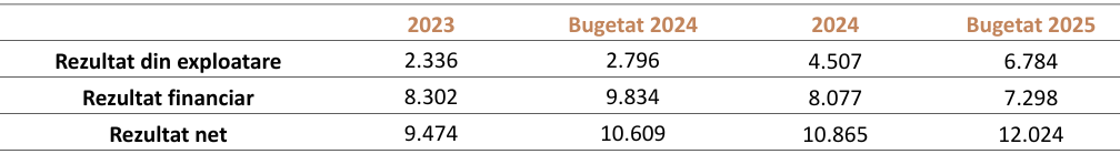 Ca rezultat al acestor evoluții, profitul din exploatare este estimat să atingă 6,8 milioane lei, reprezentând o creștere semnificativă de 51% față de anul 2024. Rezultatul financiar previzionat este de 7,3 milioane lei, în scădere cu 10% față de anul anterior.