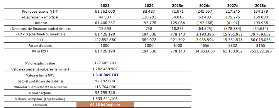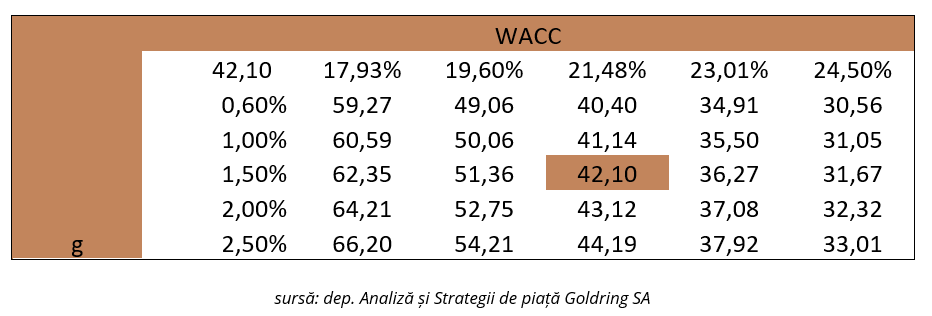 Rata de creștere terminală utilizată în calculul valorii reziduale a fost de 1,5%, reflectând perspectivele moderate de creștere ale sectorului din care face parte compania.
