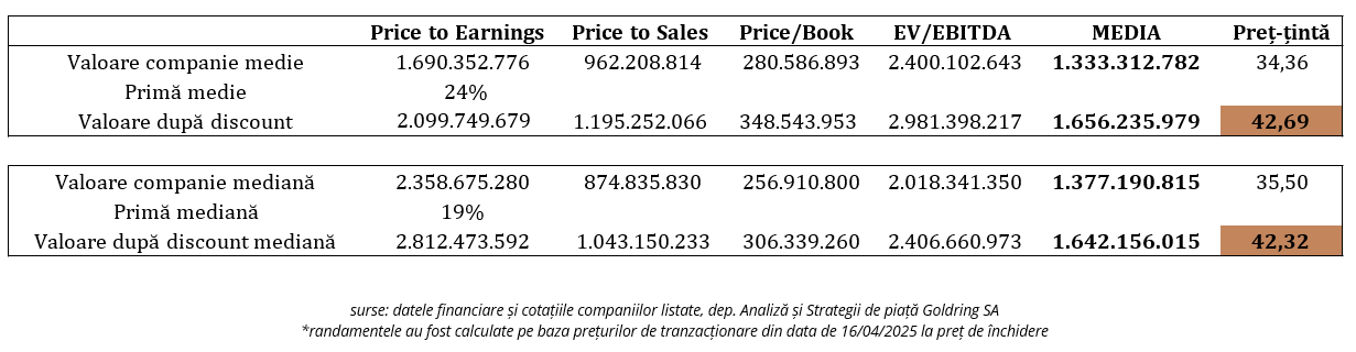 *randamentele au fost calculate pe baza prețurilor de tranzacționare din data de 16/04/2025, la preț de închidere, surse: comunicatele, datele financiare și cotațiile companiilor listate la Bursa de Valori București, bvb.ro, dep. Analiză și Strategii de piață Goldring SA